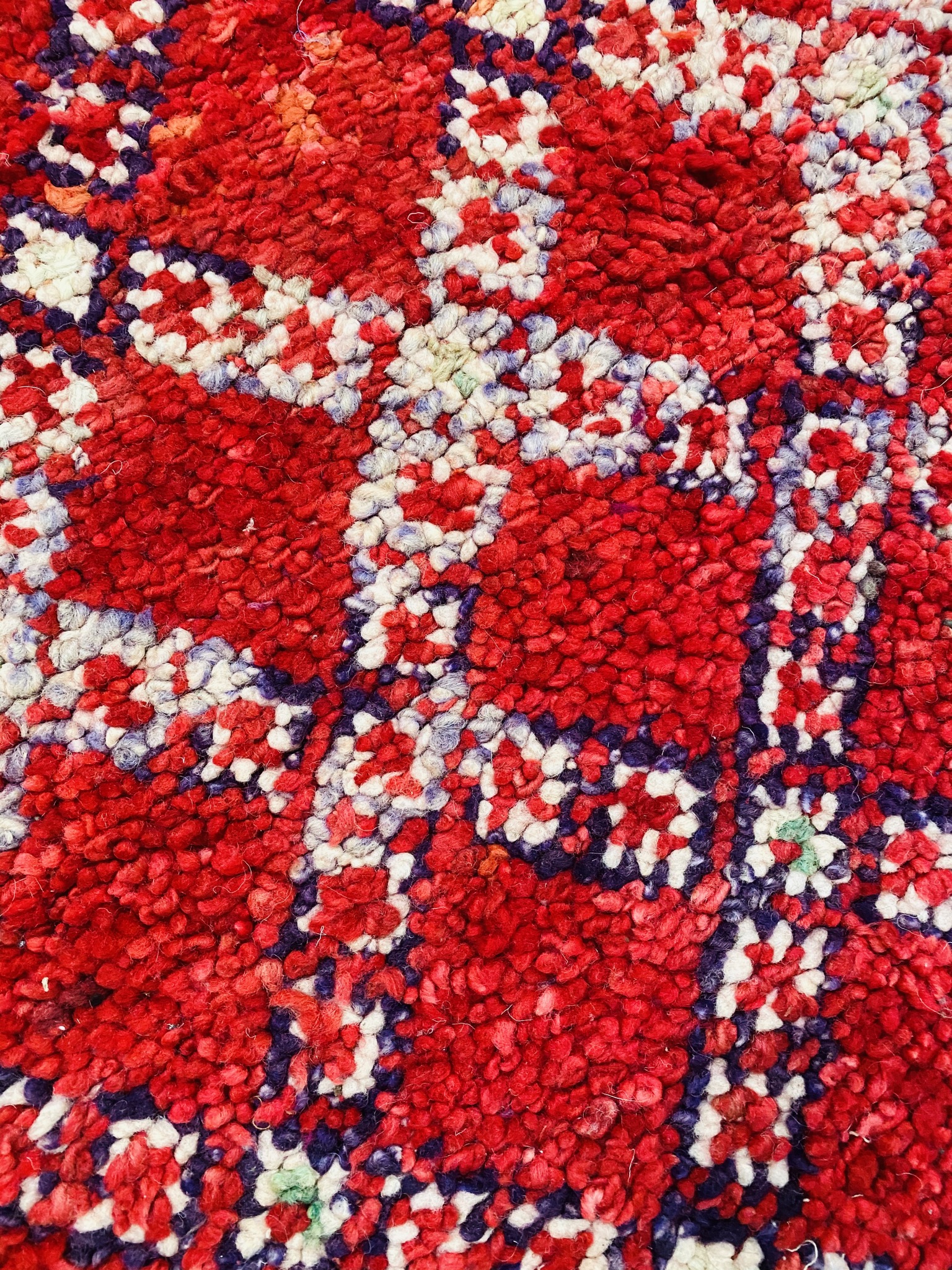 Moroccan rug made by the Zemmour tribe in the Zemmour-Zaer region, the coastal North-West region of Morocco near the capital of Rabat. Reputable for their quality, design, and the richness of their palette including decorative and geometric tribal symbolism.