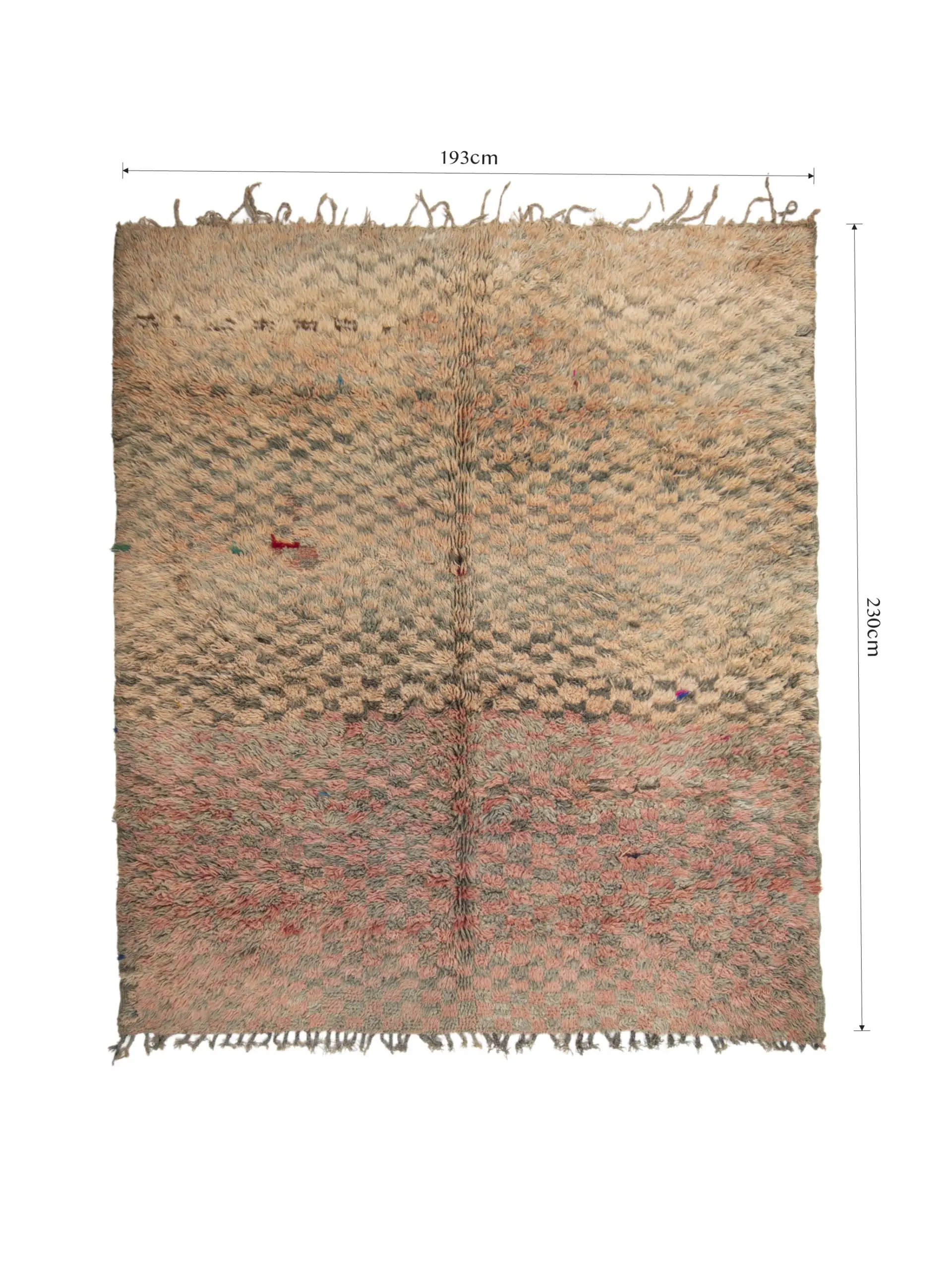 Handwoven on traditional looms using soft, naturally dyed wool, this Boujaad rug carries the patina of time, the subtle irregularities, and the soulful imperfections that make Moroccan rugs so cherished. It brings warmth, personality, and artistic edge to any interior — whether styled in a contemporary loft, bohemian space, or curated design setting.